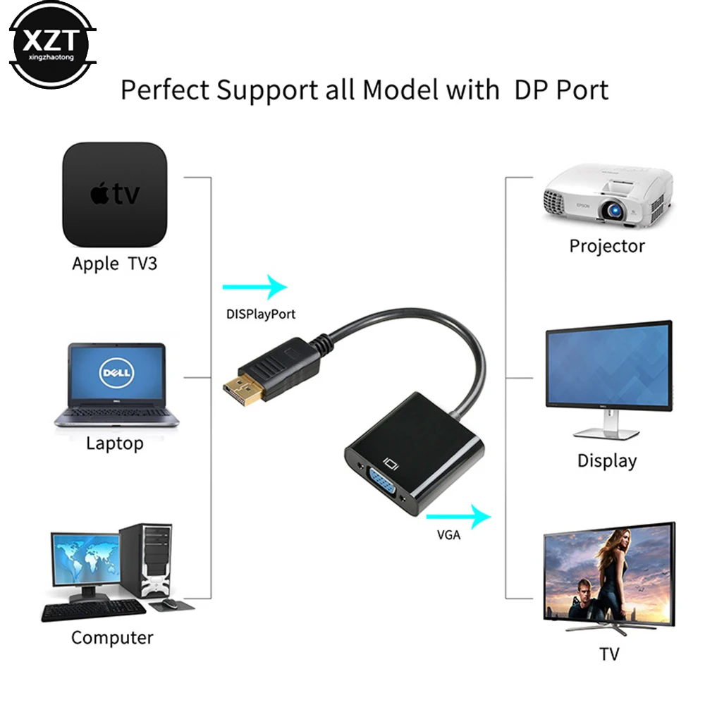 OrigenChina continentalCertificaciónAdaptador Original de DP a VGA, convertidor DisplayPort a VGA, adaptador de Cables DP 1080P para Monitor HDTV, MacBook, proyector y PC