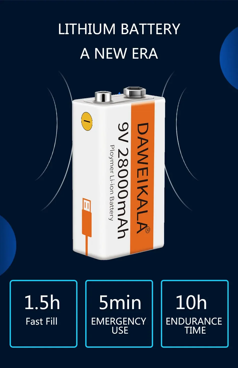Batería recargable de iones de litio para multímetro, pila de 9 V, 2024 mAh, Micro USB, para juguete, micrófono, Control remoto, uso KTV, 28000