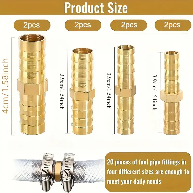 Conectores de Manguera Antifugas de Latón Acabados Universales para Aire, Agua y Combustible – Tamaños Variados 6mm/8mm/10mm/12mm, Compatibles con Roscados Europeos y Americanos