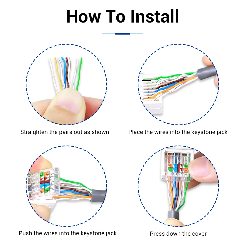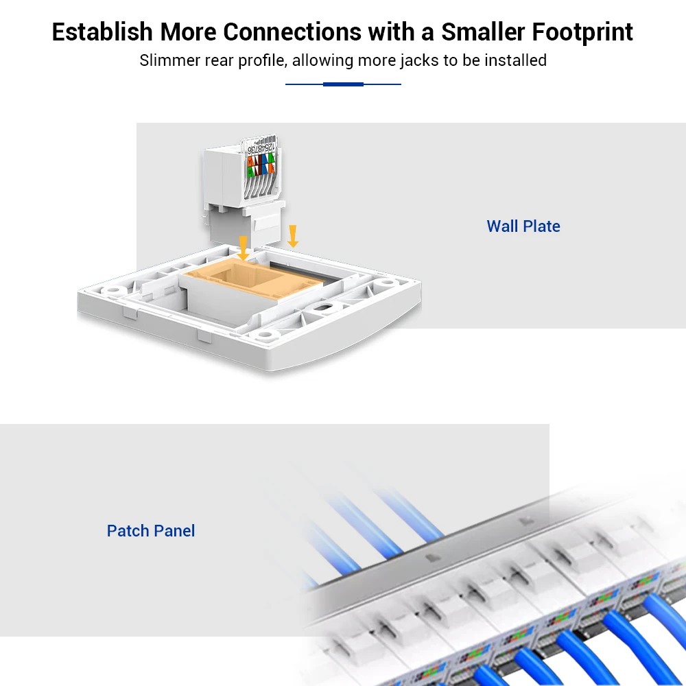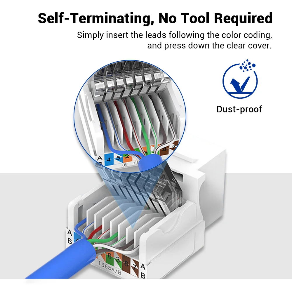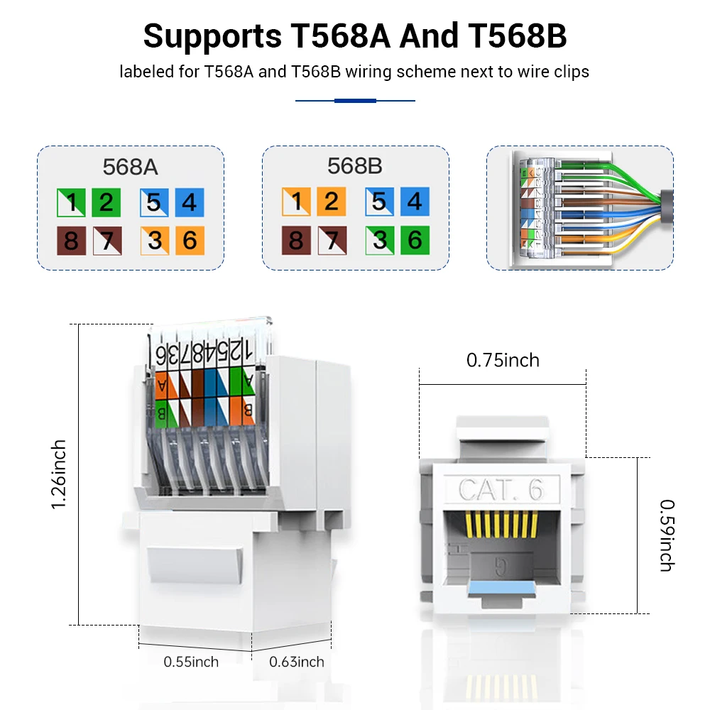 - ️ ✅Conector Keystone RJ45 Cat6 sin herramientas: admite cableado T568A T568B. Fácil conexión a cables de red [100% pasó la prueba FLUKE]
