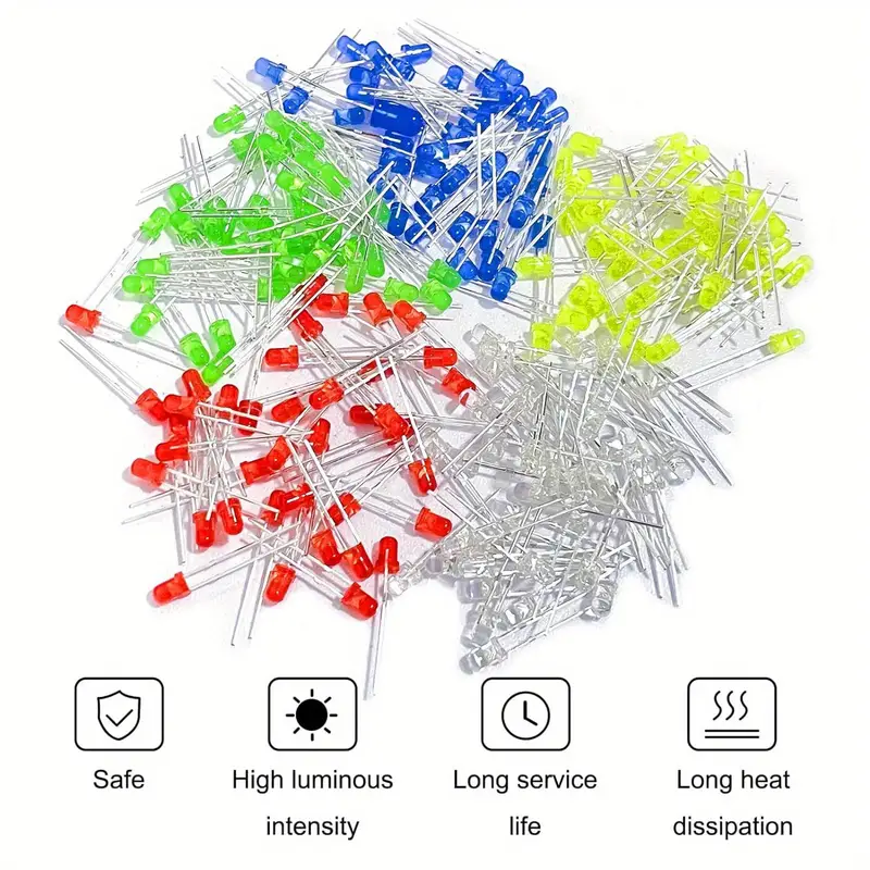 Diodo led 3mm Redondos Emisores de Luz en Circuito Multicolor rojo/Verde/Amarillo/Blanco/Azu+kphi