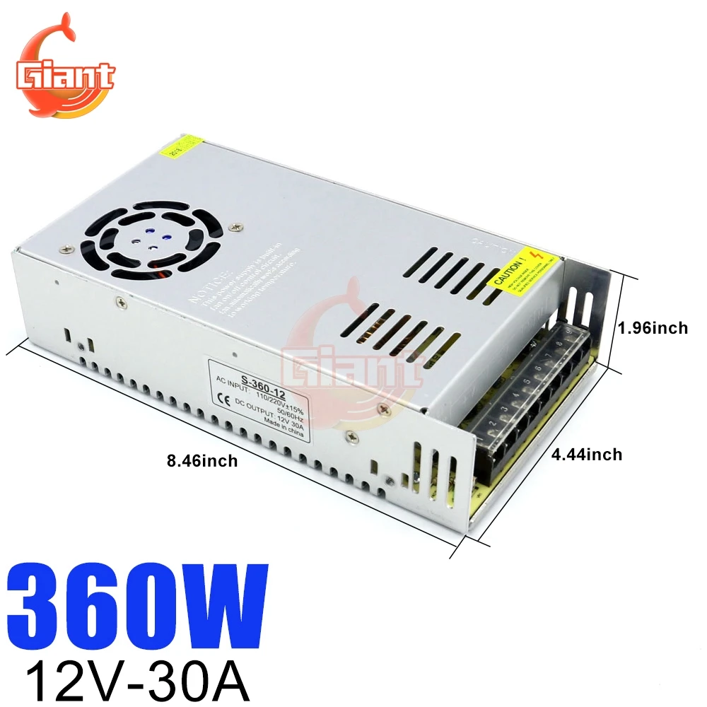 Fuente de alimentación conmutada de CA a CC de 12 V con blindaje metálico, 30 A, 360 W, LED, control de seguridad, regulador de voltaje, estabilizador, fuente, transformador, CA, CC, SMPS