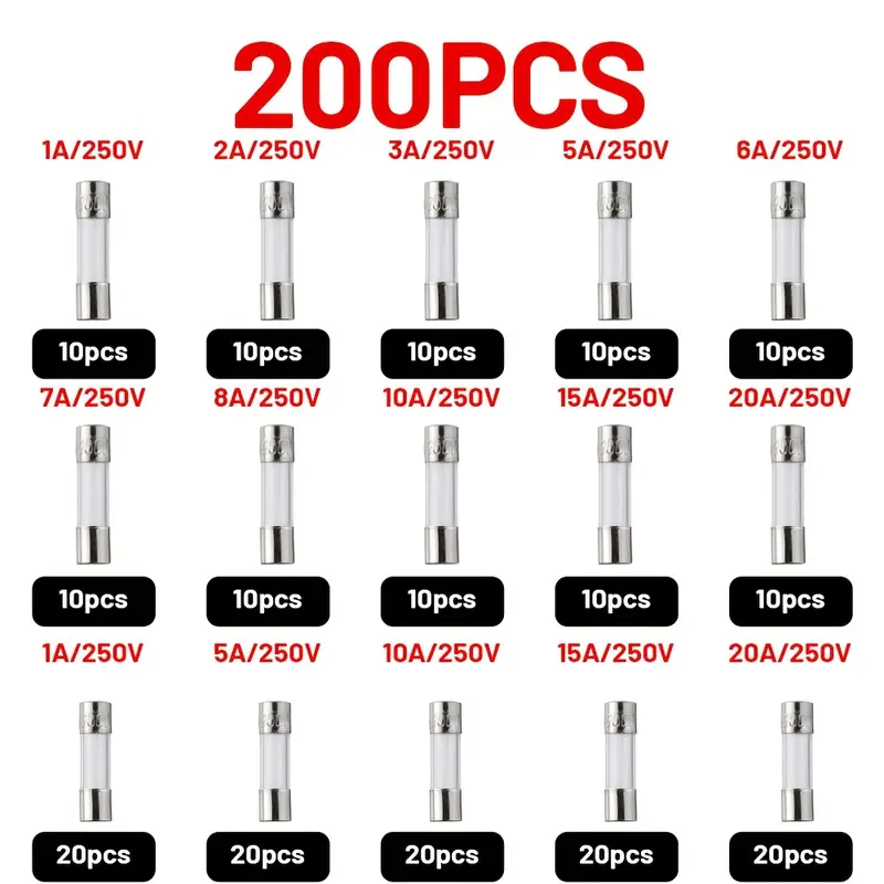 juego de 200 fusibles de vidrio premium - tamaños 5 x 20 y 6 x 30 para coche, camión y vehículo eléctrico, fáciles de usar y resistentes a la corrosión detalles 0juego de 200 fusibles de vidrio premium - tamaños 5 x 20 y 6 x 30 para coche, camión y vehículo eléctrico, fáciles de usar y resistentes a la corrosión detalles 0