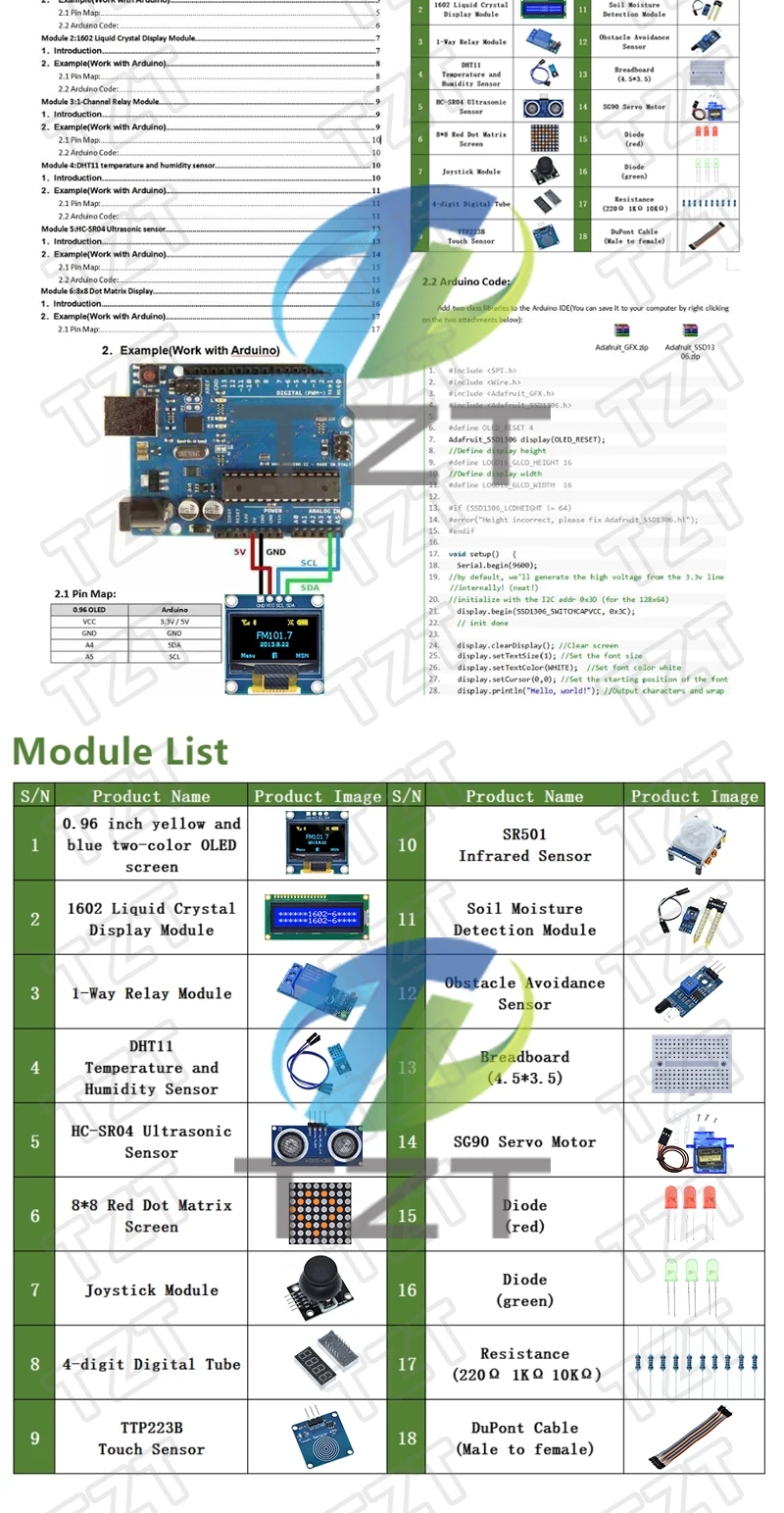con envío gratuitoKit de módulo sensor TZT UNO R3 con pantalla LCD OLED 1602 de 0,96″, relé, servomotor, DHT11 para proyectos de inicio con Arduino