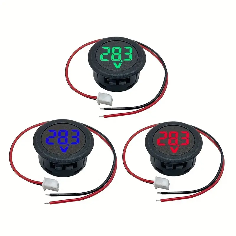 Voltímetro Digital LED – 3.8V, Pantalla Redonda de 3 Dígitos para Baterías de Coche y Medición de Electricidad