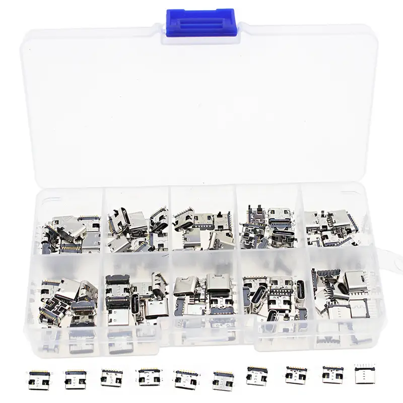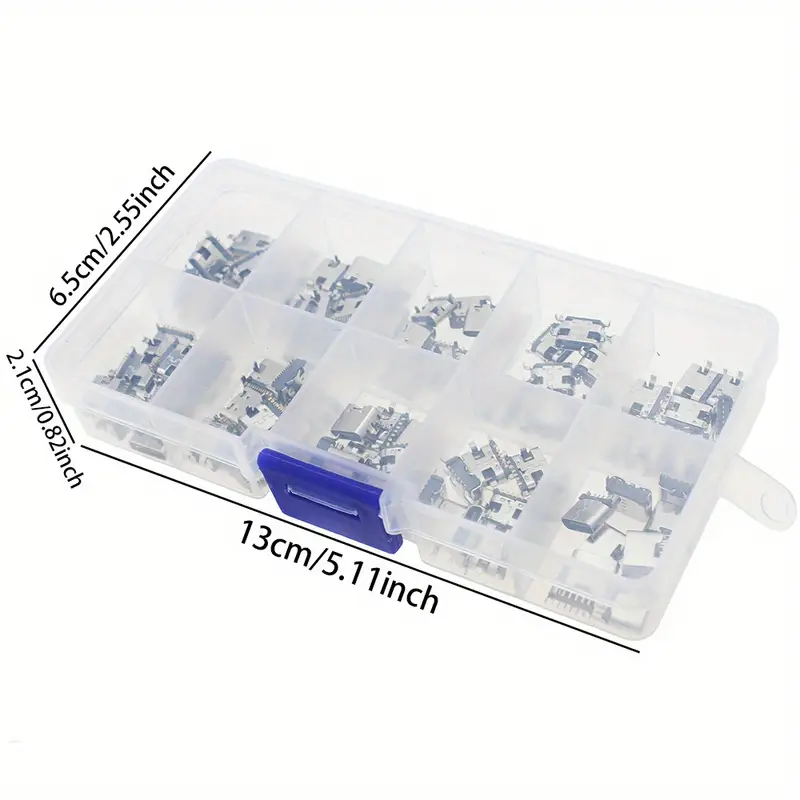 100pcs kit de zócalos micro usb asortidos, conectores de enchufe hembra de metal, 10 tipos de adaptadores de reparación y reemplazo de mini usb en de almacenamiento detalles 1100pcs kit de zócalos micro usb asortidos, conectores de enchufe hembra de metal, 10 tipos de adaptadores de reparación y reemplazo de mini usb en de almacenamiento detalles 1