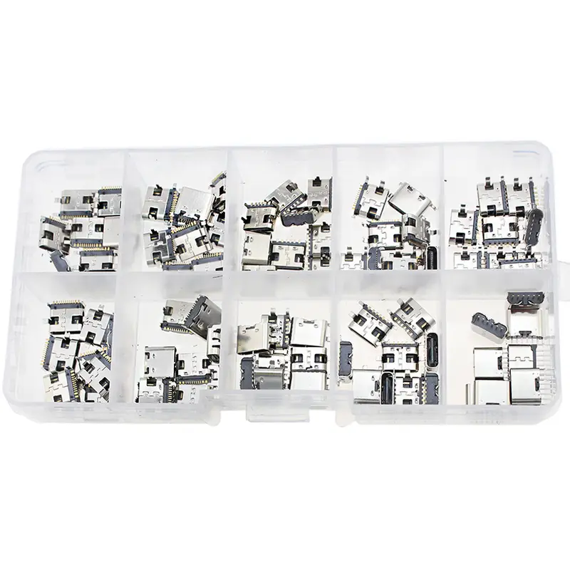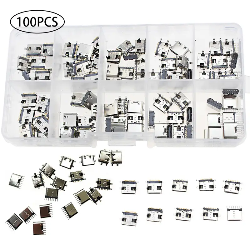 100pcs kit de zócalos micro usb asortidos, conectores de enchufe hembra de metal, 10 tipos de adaptadores de reparación y reemplazo de mini usb en de almacenamiento detalles 0100pcs kit de zócalos micro usb asortidos, conectores de enchufe hembra de metal, 10 tipos de adaptadores de reparación y reemplazo de mini usb en de almacenamiento detalles 0